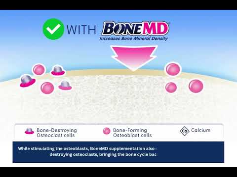 BoneMD helps build bones by regulating osteoclast cells, while at the same time increasing bone-forming osteoblast cells